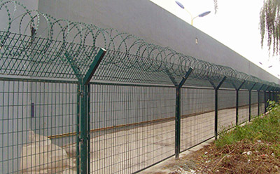 監(jiān)獄護欄網又稱作“Y型安全防御護網”監(jiān)獄鋼網墻,是由V型支架立柱,加強型焊接片網,安全防盜連接件和熱鍍鋅刀片刺籠組成強度和安全防御性級別很高,近年來,被廣泛應用在監(jiān)獄,機場,軍事基地等高安全場所。